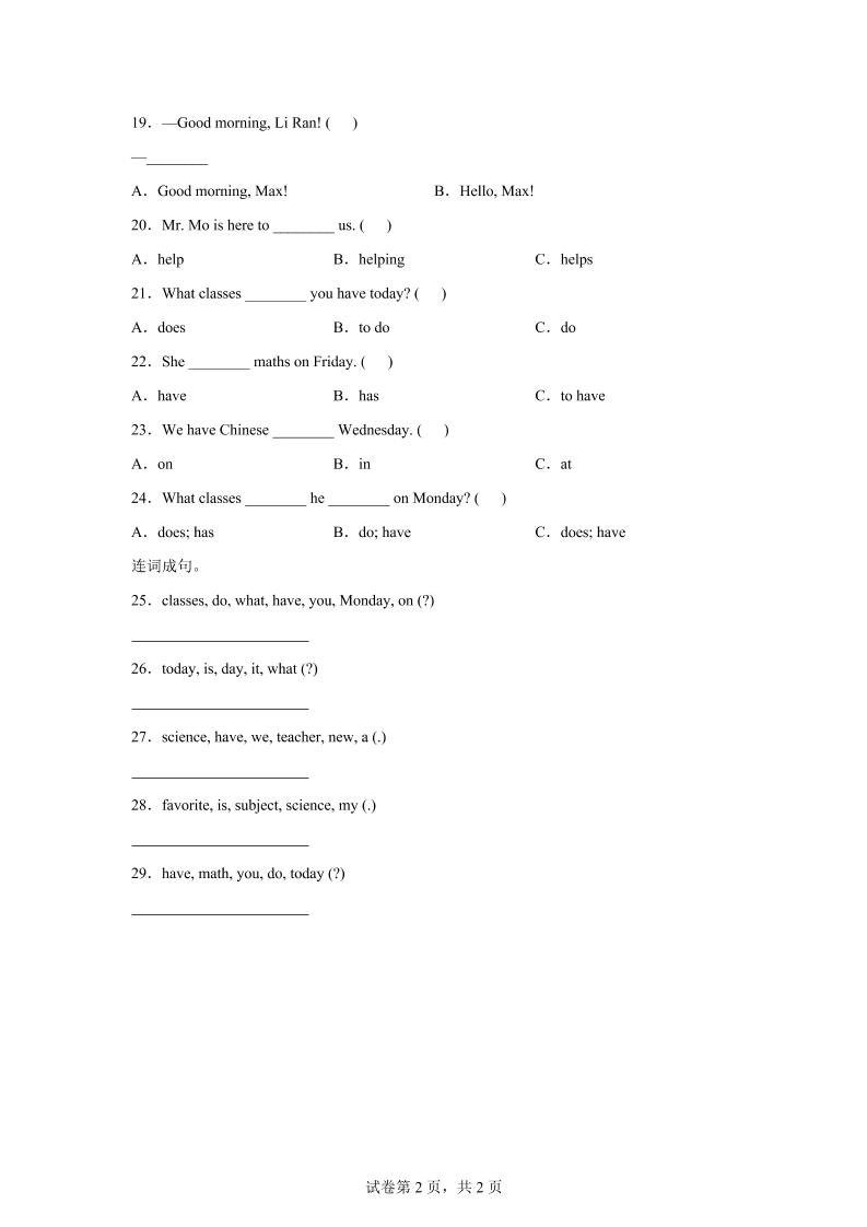 首页 > 全部 > 英语 > 2025-2026学年北师大版(2024)英语四年级上册Unit1BacktoschoolLesson2基础练习(同步练)