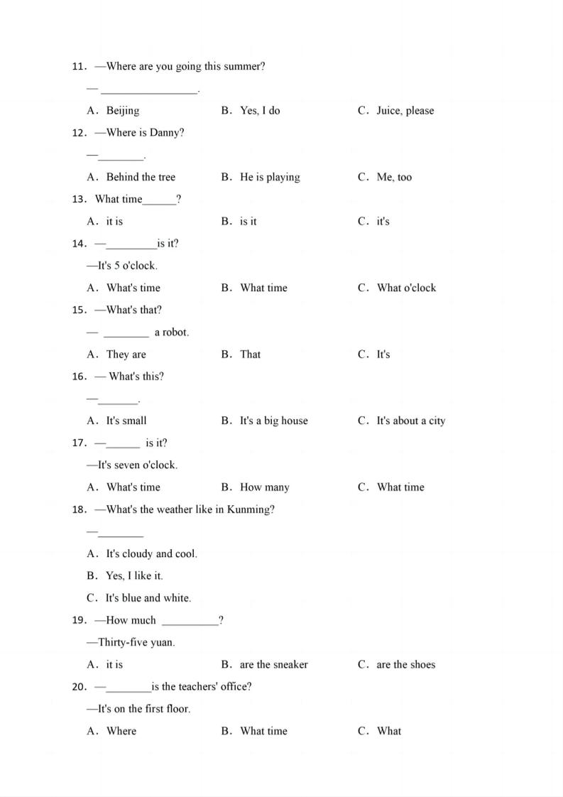 首页 > 全部 > 英语 > 四年级下英语期末疑问句知识点训练《人教PEP版》